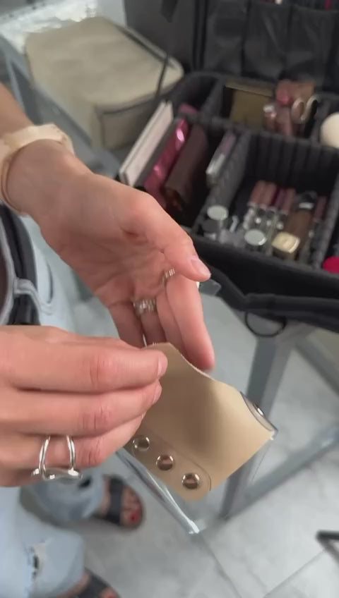 Galmify glove. It is made of soft natural leather and certified PVC material, without the addition of silicone. It allows hygienic application of cosmetics with a wet and creamy formula (e.g. lipstick foundations, shadows, eyeliners, concealers, paints, etc.) on the hand and mixing them with each other. And give an aesthetic look while working. Ideally suited to the work of make-up artists, eyelash, nail, eyebrow and hair stylists, it is convenient to use when gluing rhinestones, pearls for the body, squeezing out the glue for eyelashes. And many other people. It can be easily removed after with a wet wipe and your palette will be clean. The glamify glove will avoid direct application of products to the skin, always keeps the hand clean, and also looks beautiful and professional
